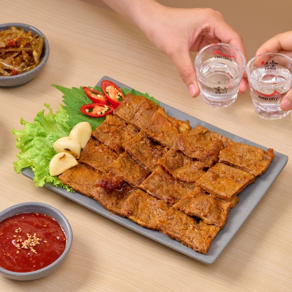 Thịt bò 🥓 được tẩm ướp chuẩn hương vị Hàn Quốc, thịt bò được nướng đủ chín để giữ được vị ngọt và độ mềm của thịt