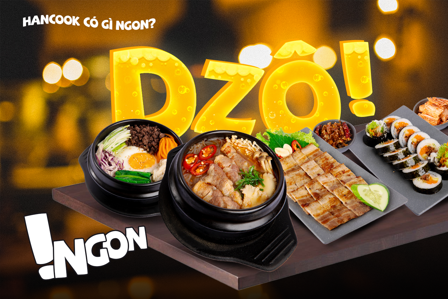 Đến với HANCOOK KOREAN FASTFOOD, bạn sẽ tìm được hương vị chuẩn chỉnh của Kimbab, Topokki, Cơm Trộn, Miến Trộn, Thịt Nướng, Mì Cay, mì tương đen, Lẩu kimchi, ... với giá thành phù hợp với đại đa số mọi lứa tuổi, một bạn học sinh vẫn có thể tự tin với túi tiền để khao bản thân một bữa ăn ngon, một cô/chú lao động phổ thông sẽ no nê, đầy năng lượng cho bữa trưa sau giờ tan ca mệt nhọc với cái nắng hè, một anh/chị ngồi văn phòng máy lạnh không phải cực nhọc vào bếp thường hay muốn thay đổi khẩu vị đều có thể ăn ngon tại HANCOOK KOREAN FASTFOOD. Tọa lạc tại các Quận trung tâm của Thành phố, bạn có thể dễ dàng đến trực tiếp tại 4 chi nhánh hoặc mở các app giao hàng phòng cho các trường hợp nắng mưa.