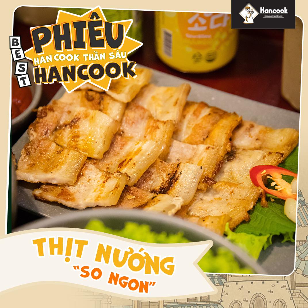Những miếng thịt mỏng, ngon lành, vàng ươm sau khi nướng trên bếp than nóng, cùng với các loại gia vị đặc trưng Hàn Quốc, tạo nên một hương vị tuyệt vời mà bạn sẽ khó lòng tìm thấy ở bất kỳ nơi nào khác. Không chỉ thế, không gian thoải mái và phục vụ nhiệt tình tại Hancook sẽ khiến bạn cảm thấy như đang tận hưởng một bữa tiệc tại Hàn Quốc thật sự.